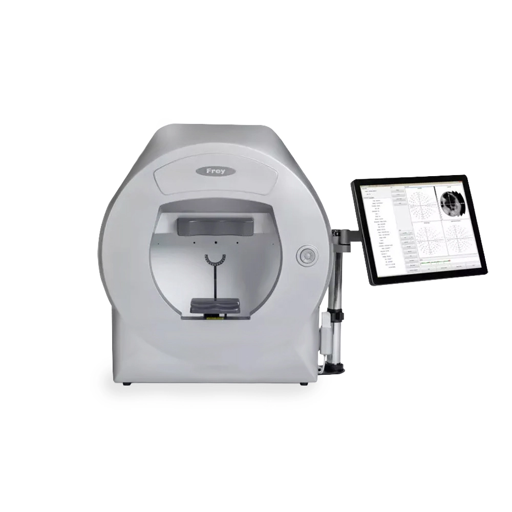 - Test du champ visuel (périmétrie) qui détermine la surface détériorée de votre vision périphérique.